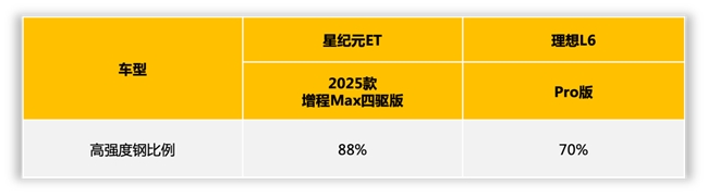 理想L6则采用70%的高强度钢铝混合车身,虽然也达到了行业内的优秀标准,但在用料的极致程度上,星纪元ET显得更为扎实。