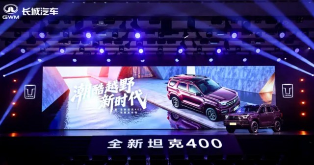新款坦克400整体延续了机甲风格设计,前格栅配备两条横向布局的镀铬饰条,头灯组为多边形样式,视觉上展现出硬派越野车的霸气与时尚。