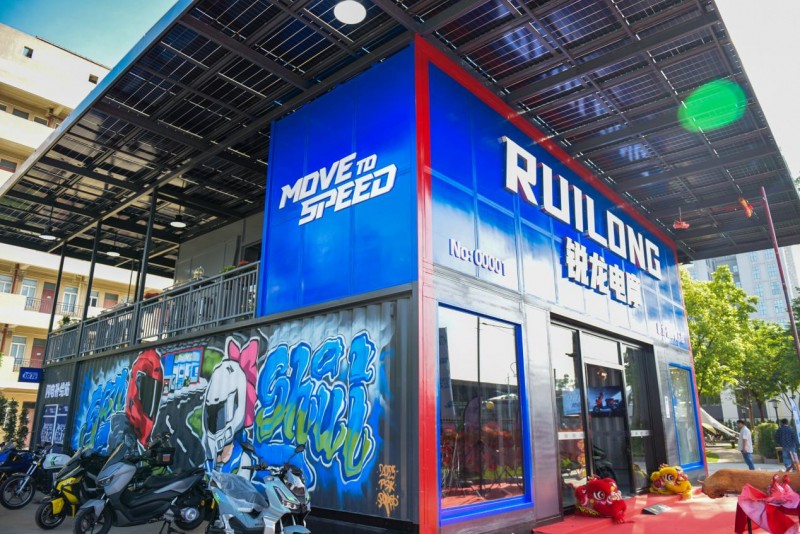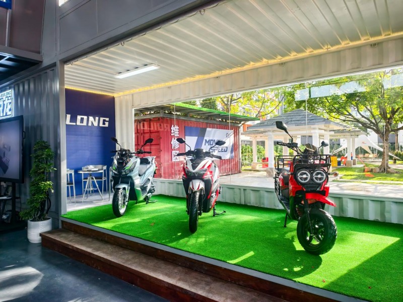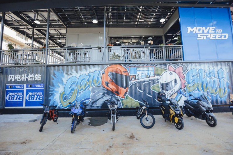 馆内核心区域包括:先锋展销区,展示锐龙品牌全系高速电动摩托,用户可近距离感受其“汽车基因”与“绿智酷玩”的设计理念;智慧能源站集成光伏发电与储能系统,百分百离网发电完全自主掌控的核心竞争力,提供极速充电、智能换电等多元补能方案,真正实现“即驱无界”;潮玩社交空间打破传统门店格局,设立休闲区、打卡点、高尔夫球区,未来将定期举办车友会、主题沙龙等活动,打造属于摩友的潮流聚集地。