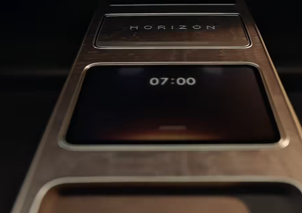 ET9地平线特别版的全新色彩主题日照金山,灵感源自云南梅里雪山的壮丽景观。当清晨的第一缕阳光穿透云层,洒落在雪山之巅,整座山脉仿佛被点燃,化作光芒万丈的金色宫殿。这种自然景观的壮美与神奇,被蔚来巧妙地转化为星云红与曙光金的组合,复现了朝阳映照雪峰的流光溢彩瞬间,视觉上让每一辆ET9地平线特别版都成为了一件移动的艺术品。