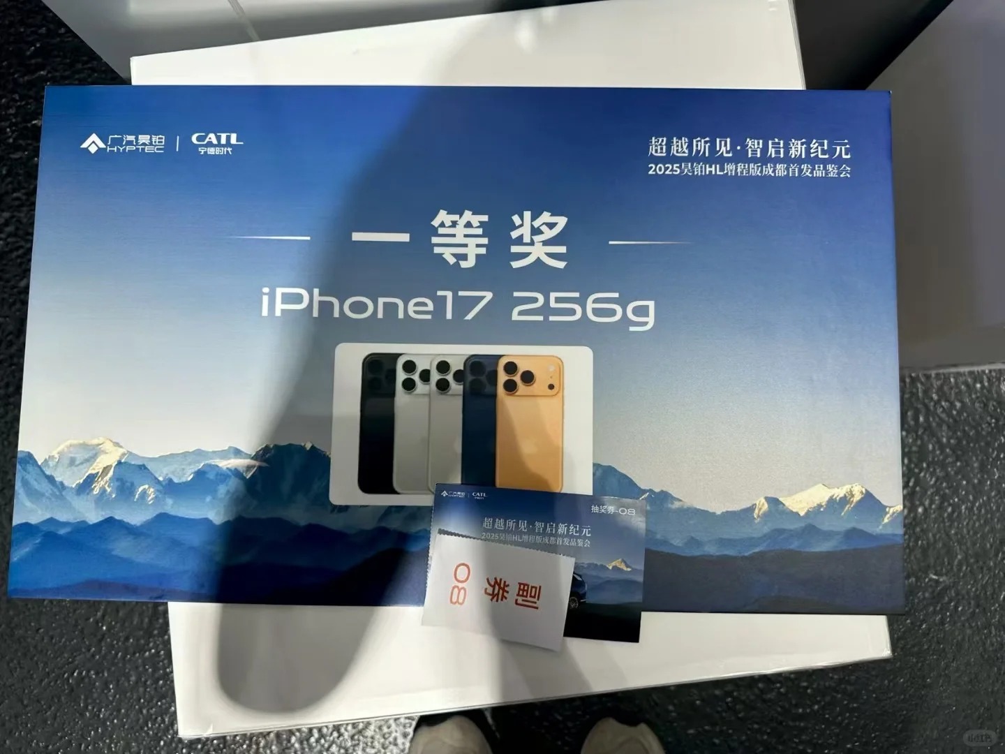 近日,据媒体报道2025年8月19日,广汽昊铂在成都举办了昊铂HL增程版的首发品鉴会。这场活动吸引了众多潜在消费者的关注,参与者需要购买99元的购车早鸟票才能参加。活动海报上明确列出了三种奖项:一等奖为iPhone 17 256GB版本,二等奖为空气净化器,三等奖为吹风机。