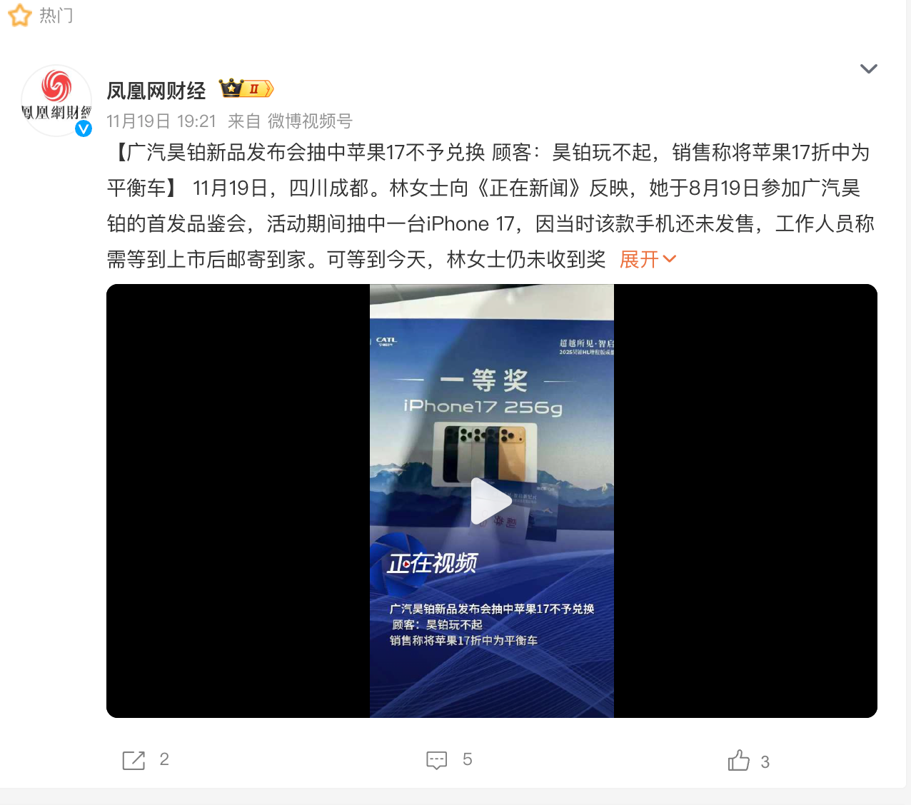广汽昊铂作为一家知名的汽车品牌,举办新品发布会本应是展示品牌形象和提升用户满意度的良好机会。然而,这起抽奖事件却暴露出品牌在活动管理和用户沟通上的不足。从活动海报的宣传到奖品发放的执行,每一个环节都应做到透明、公正和诚信。如果品牌在活动中存在模糊不清的规则或误导性信息,不仅会损害中奖者的权益,也会让其他参与者对品牌产生质疑。