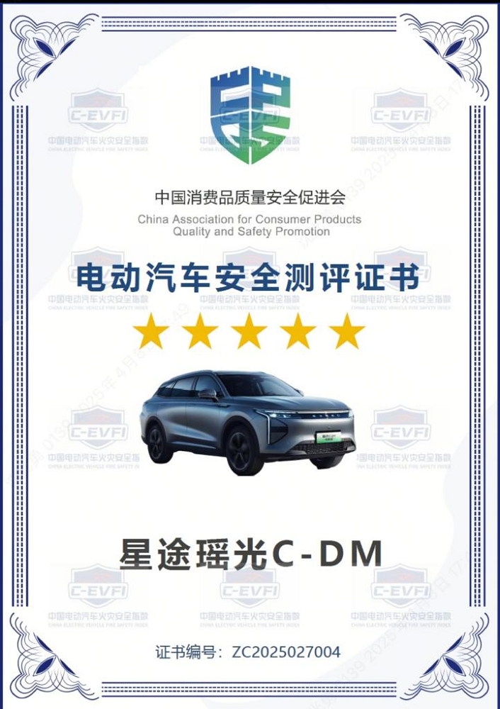 电池安全,电芯是关键。瑶光C-DM在人工制造800摄氏度高温引发电芯熔融的相关实验中,基于优异的电池燃设计,以及强大的热管理系统的管控,在电芯熔融即刻斩断热失控蔓延的可能性,凭借出色表现,成功收获中国电动汽车火灾安全五星认证。