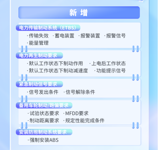 2025年年中,工信部发布了强制性国家标准GB 21670—2025《乘用车制动系统技术要求及试验方法》,对ETBS(线控制动)系统增加并优化了多项要求。