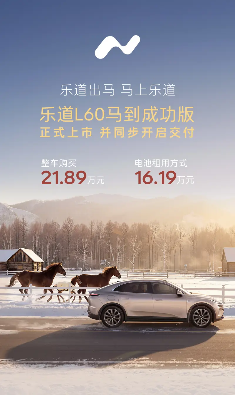 天天电动获悉,1月16日,乐道汽车正式推出L60“车型马到成功版”,新车整车购买价21.89万元、电池租用(BaaS)方案16.19万元,并同步开启交付。作为乐道品牌旗下中型纯电SUV的重要新版本,“马到成功版”不仅在配置上进一步丰富,更结合了多项限时购车权益与政策红利,为消费者带来更高性价比的绿色出行选择。