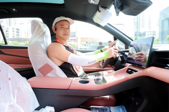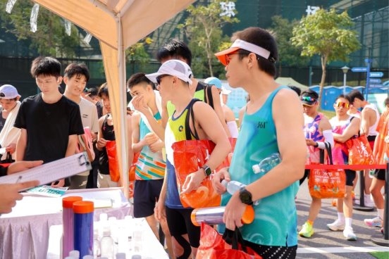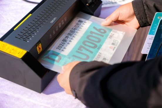 展台设置了双重互动环节:观众到场打卡留资,可领取塑封号码牌;拍摄展车或现场画面发布至社交平台,还可额外获赠实用小礼物。现场已有不少跑者参与互动。