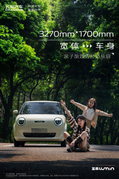 长安Lumin是长安汽车旗下三门四座纯电新能源轿车,得益于它同级别最长的车身长度(3270mm)与宽度(1700mm),非常适合当下年轻人日常通勤,周末郊游等使用场景。