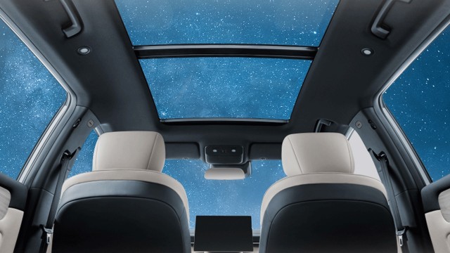 新车配备1362mm×870mm超大星河天窗,总面积超1.18㎡,可开启面积达0.6㎡。相比同级尺寸更大、透光性更好、车内视野更开阔、座舱更通透。