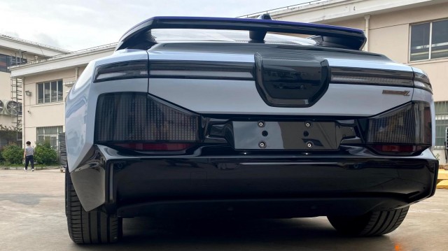 车尾部分,同样我们可以看到大量的灯组设计,车尾的上方布置了尾翼装置,进一步提升了该车的运动感。