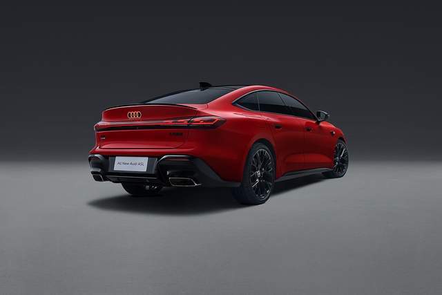上汽奥迪A5L的侧面线条流畅,配备了嵌入式门把手以及多幅式轮毂。车尾采用溜背造型,运动感十足。车尾部分,配有贯穿式尾灯。尺寸上,官方数据显示奥迪A5L的长宽高分别为4903/1883/1427mm,轴距为2922mm,车身长度和轴距相比海外版本分别加长了74mm和22mm。