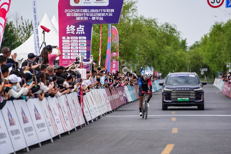 辽宁康平,2025年6月1日——在星纪元ET和ES的领衔下,由揽月、瑶光、凌云等组成的车队共同护航下,2025年中国公路自行车联赛暨骑游大会康平站圆满结束。在男子个人赛这一压轴大戏中,美利达诺飞客车队的徐兆亮经过249公里的激烈角逐,在最后41公里时单枪匹马突围成功,勇夺冠军。内蒙古队的姜艺培和大连队的乔峰分别获得亚军和季军。本站赛事吸引了全国24支职业车队及千余名骑手参与,在连接卧龙湖和辽代古塔的生态赛道上展开了激烈的较量。