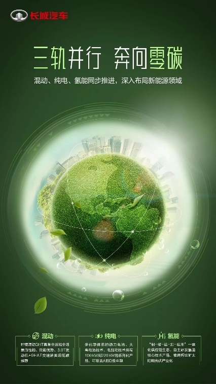 为早日实现“双碳目标”, 长城汽车新能源战略转型全面提速。在“绿智潮玩嗨世界”的使命愿景指引下,长城汽车以打造“全球化智能科技公司”为前行目标,秉承全产业链低碳环保理念,坚持绿色、清洁能源的研发与投入,为用户带去绿色出行体验,全力助推全球可持续发展。