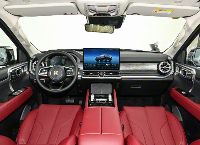 内饰方面,新款坦克400整体布局与在售车型相比没有明显变化,中控屏尺寸由16.2英寸调整至15.6英寸,但支持2.5K分辨率,并搭载第三代Coffee OS车机系统、Coffee GPT大模型语音交互等。该车还配备12.3英寸全液晶仪表、HUD抬头显示等,并换装怀挡式换挡机构,提升了车内的科技感和操作便利性。配备Nappa打孔真皮材质包覆的座椅,前排支持加热/通风,主驾座椅提供3挡8点式按摩,为驾驶者提供了极致的舒适体验。后舱配备15.6英寸2.5K娱乐屏,中央扶手箱内提供5.4升车载冰箱,支持零下6摄氏度至50摄氏度温度调节。此外,该车还提供后排手动遮阳帘、14扬声器音响系统等配置,为用户打造了一个豪华舒适的车内空间。