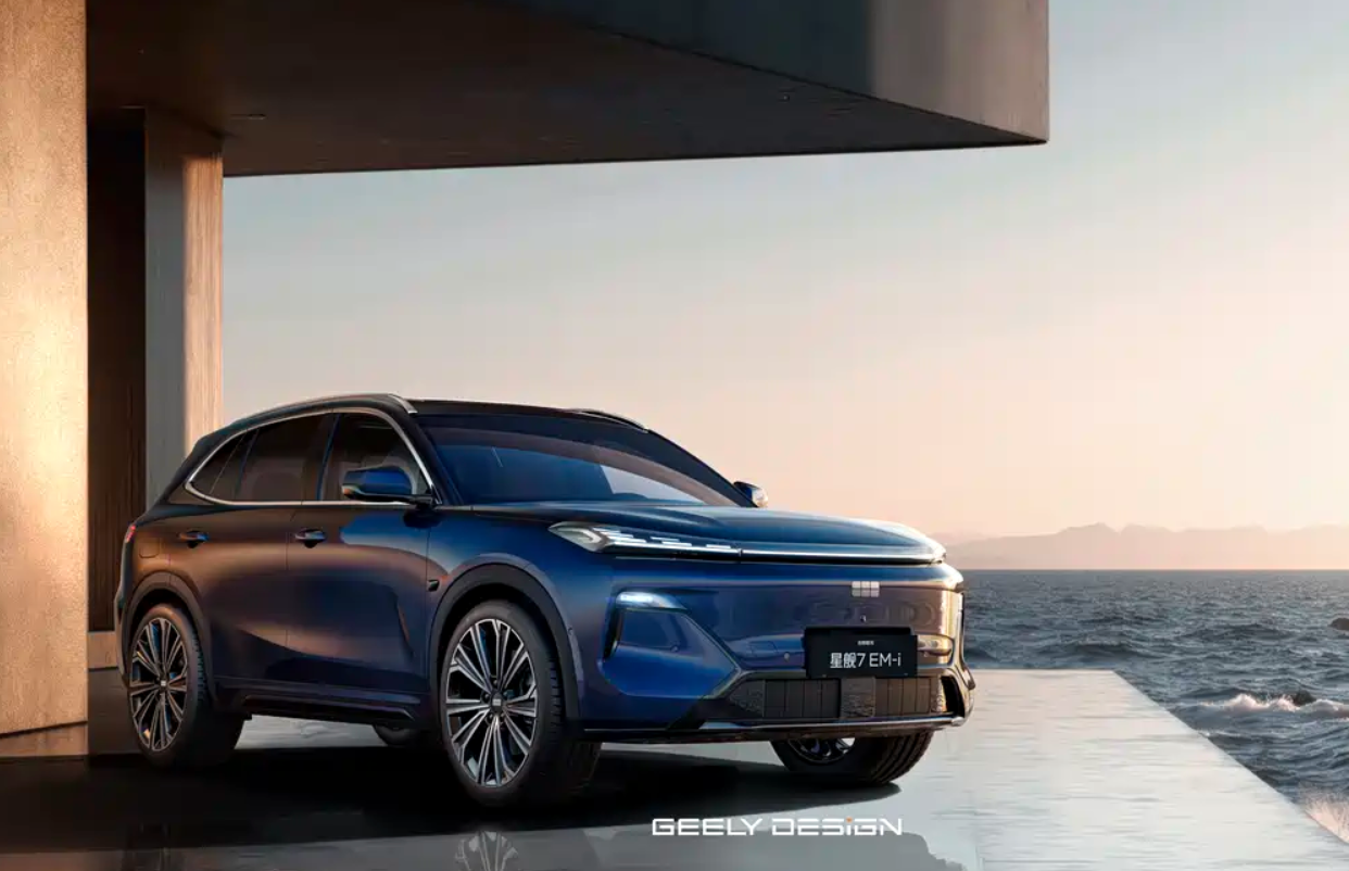 从海报图片看,新款银河星舰7 EM-i延续了现款车型的设计风格,整体造型时尚且大气。新增的“三潭映月·星海蓝”外饰色彩,为车辆增添了一份独特的魅力,使其在众多车型中脱颖而出。