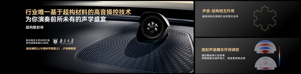 在座舱内值得一提的还有伯牙之音音响系统。西有柏林之音,东就有伯牙之音。星途ET5致力于打造一款声学标杆,搭载21个扬声器构建7.1.4全景声场,驱动功率高达1080W。其核心技术,在于应用了行业唯一的“超构散射体”技术,该技术由星途联合南京大学陈延峰院士、卢明辉教授团队打造,是超构材料在音响行业的首次应用,相关研究成果已发表于SCI杂志。该技术是基于“声音-结构相互作用”原理,该技术通过透射声波耦合作用调控,有效解决了传统高音指向性强的问题。增加散射体片后,不仅高音更加明亮自然,更大幅提升了两侧乘客区域的声音覆盖范围。在配合业界第一的“房中房”音响实验室与金耳朵团队调校,为全车乘员带来前所未有的声学盛宴。
