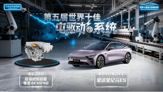 2025年11月22日至23日,由汽车评价研究院主办的第五届世界十佳电驱动系统评价实车测试及评审会在北京顺利举办。超能智享美学轿跑ES搭载的奇瑞鲲鹏超能电驱AEH240,成功从15款入围电驱动系统中脱颖而出,斩获“第五届世界十佳电驱动系统”称号。这一权威认证,不仅是对ES卓越技术实力的高度肯定,更彰显了奇瑞在新能源核心技术领域自主创新的深厚底蕴与雄厚实力。