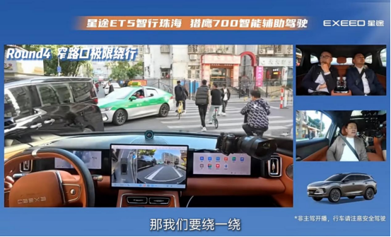 在近期奇瑞李学用、地平线余凯与媒体人吴佩的联合直播中,星途ET5在珠海复杂路况下的表现堪称教科书级。特别是在一个极具挑战的窄路口,车辆连续四次主动蠕行、拐弯礼让,最后稳稳直行。这种“谦逊的智能”,证明了其博弈算法的成熟度,可以说是懂规则,更懂人情世故。