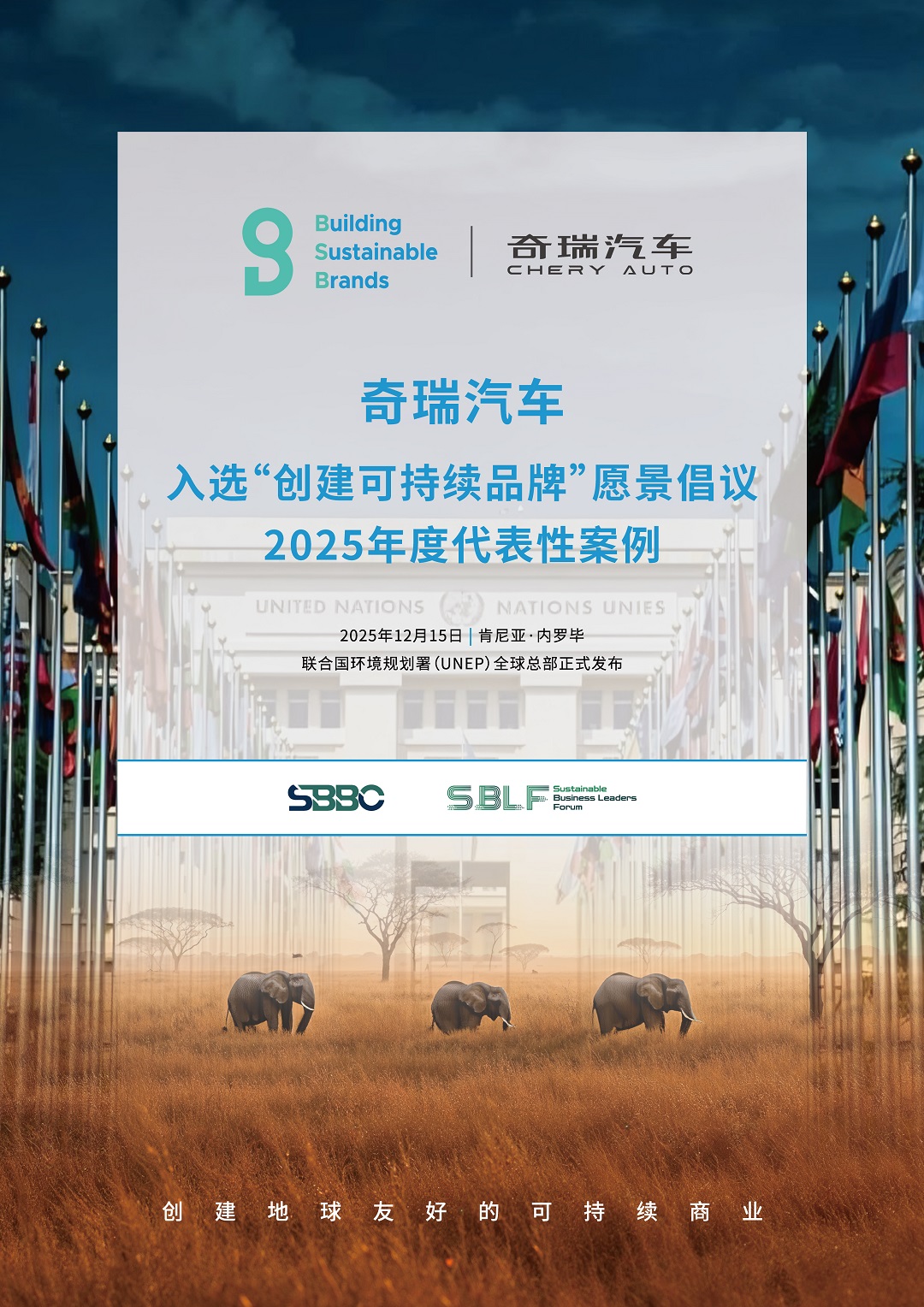 2025年12月15日,在联合国环境规划署(UNEP)位于肯尼亚内罗毕的全球总部,奇瑞汽车入选“创建可持续品牌”愿景倡议2025年度代表性案例,向世界展示中国企业在可持续发展道路上的卓越实践。在联合国这一权威多边舞台上,此举不仅彰显了中国品牌的全球责任担当,更呼应了国际社会对商业向善、绿色转型的深切期待。