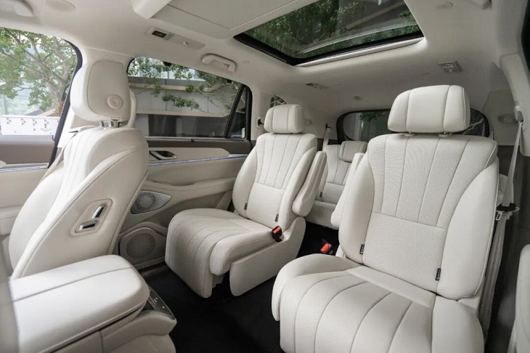 揽月C-DM 轴距为 2900mm,提供6/7座灵活选择。本次对比的6座版,第二排为独立VIP座椅,功能齐全。其核心优势在于内饰的 精工豪华氛围(大面积软包、高级麂皮、256色氛围灯)与 空间的灵活多功能性,三排实用,放倒后载物空间平整。