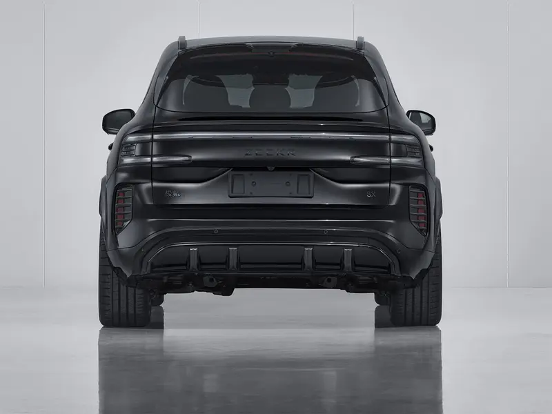 具体看,极氪8X 性能旗舰版整体延续了家族式设计风格,前脸依旧采用了直瀑式格栅,不过使用了黑化处理,看起来运动感更强。新车前脸配备了分体式灯组,车顶搭载了激光雷达,黑色轮毂以及红色卡钳,让整车的运动属性进一步提升。车尾部分,依旧是贯穿式设计,不过尾灯同样采用了黑化处理,所以看起来更加简洁,更凸显运动感。尾灯由 54894 个钻石型面打造而成,搭配 630nm 超红光技术,点亮后辨识度拉满,夜间行驶时视觉效果极具冲击力。为了匹配高性能定位,新车还配备了 315 宽胎及大型电动尾翼,宽大的轮胎提供了更强的抓地力,电动尾翼则能根据行驶速度调节状态,进一步优化空气动力学,让新车的极速提升至 230km/h。