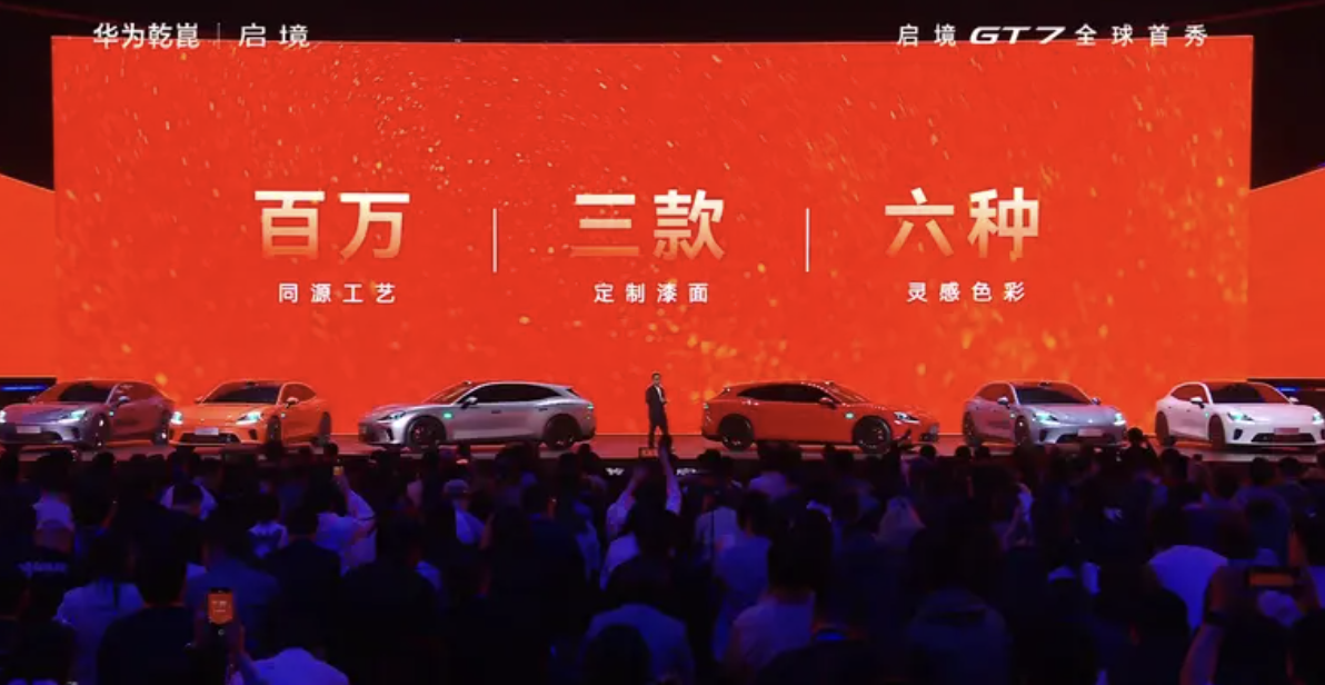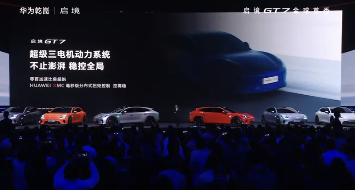 启境 GT7 提供纯电与增程双动力选择。纯电动车型基于 800V 高压平台打造,搭载三电机动力系统,配合华为 XMC 数字底盘引擎,实现毫秒级扭矩精准分配,性能表现比肩超跑。电池采用宁德时代、华为乾崑与启境联合定制的新一代麒麟电池,支持 6C 超充技术。
