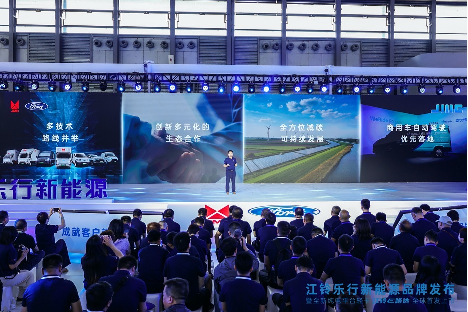 吴晓军还分享称,如同全新的JMC LOGO释义,江铃乐行新能源布局满足全场景的产品,确保用户可以“好运货”;搭建全场景服务平台,确保用户和客户、各个合作方、物流企业,通过全场景服务平台“货好运”;构建全场景生态,携手经销商、物流及货运平台头部玩家,共创高效运力生态,助力客户降本增效“运好货”,最终为城市的绿色智慧物流提供更多解决方案。